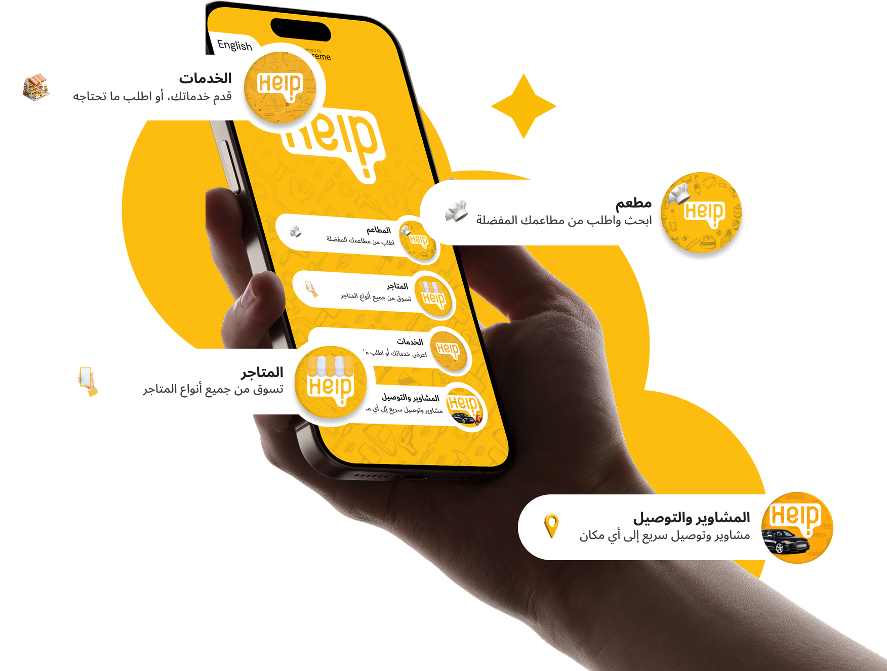 تم إنشاء “اعثر على المساعدة” لتبسيط حياتك اليومية من خلال تقديم جميع الخدمات التي تحتاجها في مكان واحد. بدلاً من التنقل بين عدة تطبيقات، يمكنك الاعتماد على منصة واحدة تجمع المطاعم والمتاجر والخدمات وخيارات التوصيل. نركز على توفير تجربة سلسة وسريعة وآمنة، مع مجموعة واسعة من الخيارات لتناسب احتياجاتك في أي وقت. هدفنا هو جعل الوصول إلى أي خدمة أسهل وأسرع من أي وقت مضى.